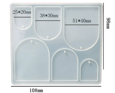 This silicone mould is designed for casting arch-shaped jewellery components in a range of sizes. Each cavity includes a small hanging hole, making the finished pieces suitable for earrings, pendants or decorative jewellery elements without additional drilling.