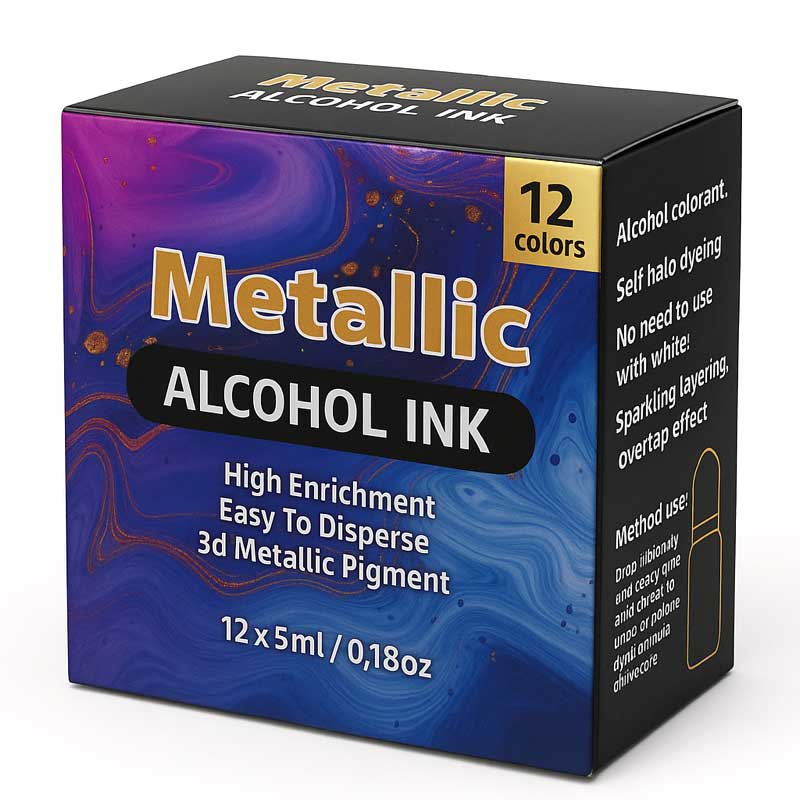 This vibrant set of metallic alcohol inks brings a bold, reflective touch to your resin projects. Each bottle contains a high-enrichment formula designed to disperse evenly and deliver a self-halo dyeing effect that naturally settles into beautiful layers. The inks contain a fine 3D metallic pigment that adds depth and luminosity to any pour or cast.