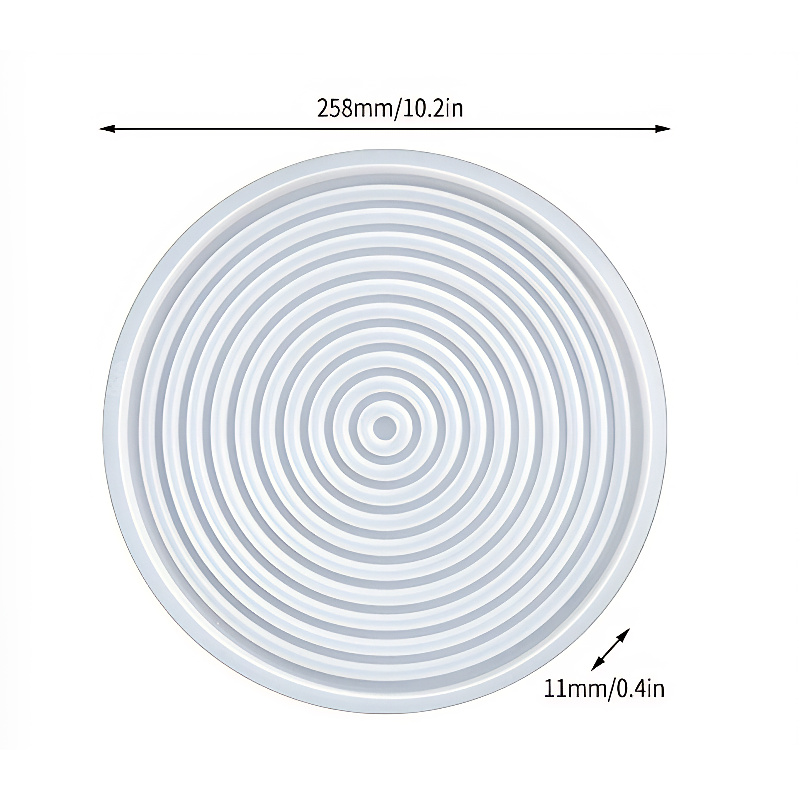This large round silicone mould is designed to cast a tray with concentric ribbed detailing radiating from the centre. The circular form and repeating grooves create a clean, balanced design that works well as a decorative or functional tray.