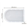 This silicone mould is designed to cast a tray with a rectangular body and a smoothly rounded end, featuring evenly spaced ribbed detailing that follows the curved profile. The shape creates a clean, modern tray with a structured layout.