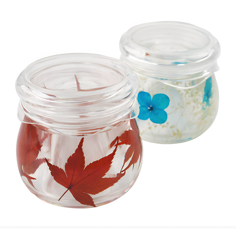 The mould is manufactured from flexible, durable silicone and uses separate sections for the jar body and lid to allow clean demoulding and consistent shape. The open design supports layered pours and embedding decorative elements such as dried flowers, pigments or inclusions.