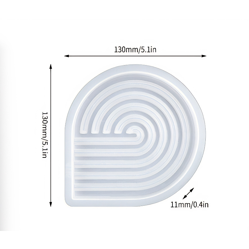 This silicone mould is designed for casting a round tray featuring a continuous spiral ribbed pattern that flows from the centre outward. The design creates a strong visual focal point while maintaining a clean and balanced tray shape.